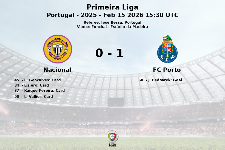 Funchal, Portugal – Dans un match disputé à l’Estádio da Madeira, le FC Porto a réussi à s’imposer face à Nacional par une faible marge. Le match, comptant pour la 22e journée de la Primeira Liga 2025, a été caractérisé par une intensité élevée et un jeu tactique des deux équipes.