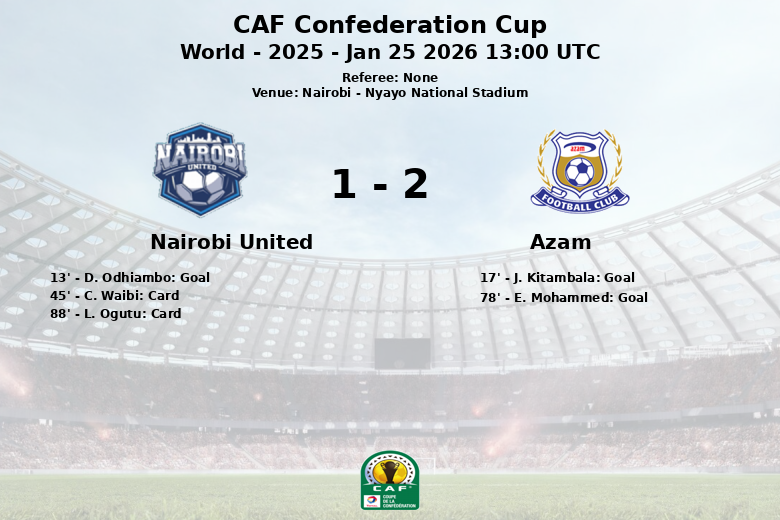 Nairobi United a pris l’avantage dès le début, avec un but de D. Odhiambo à la 13e minute, sur une passe décisive de M. Karamor. Cependant, Azam a répondu rapidement, avec J. Kitambala trouvant le filet à la 17e minute, grâce à une passe de Y. Diaby.