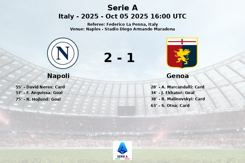 Naples, Italie – Dans un match animé qui s’est déroulé au Stadio Diego Armando Maradona, Naples a réussi à surmonter un déficit initial pour vaincre le Genoa sur un score final de 2 à 1.