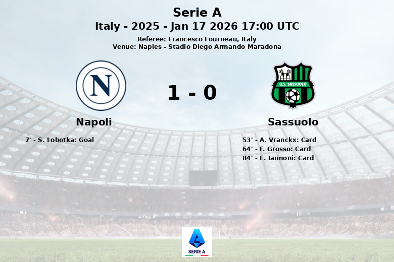 Naples, Italie – Lors d’un match comptant pour la 21e journée de Serie A, Naples a décroché une courte victoire contre Sassuolo grâce à un but solitaire de Stanislav Lobotka à la 7e minute. La rencontre, qui s’est déroulée au Stadio Diego Armando Maradona sous l’œil attentif de l’arbitre Francesco Fourneau, a été d’une grande intensité et marquée par une bataille au milieu de terrain.