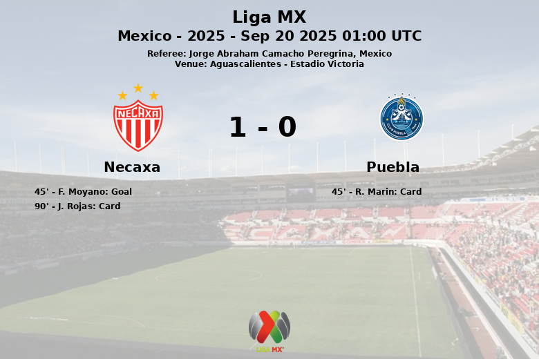 Remplacements dans l’quipe de puebla: À la 46e minute, J. Fedorco est entré et E. Navarro est sorti., À la 67e minute, R. Castillo est entré et B. Garnica est sorti., À la 67e minute, P. Gamarra est entré et M. Ramirez est sorti., À la 80e minute, O. Gonzalez est entré et C. Baltazar est sorti., À la 80e minute, R. Marin est entré et E. Lozano est sorti., À la 89e minute, J. Rivas est entré et A. Organista est sorti.