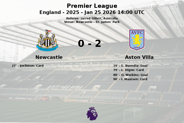 Aston Villa a ouvert le score à la 19e minute avec un but de E. Buendia, sur une passe décisive de M. Rogers, réduisant au silence le public local. Newcastle a tenté de réagir, générant quinze tirs au total, dont quatre cadrés, mais n’a pas réussi à concrétiser ses occasions. La défense de Villa est restée solide, frustrant les tentatives de l’équipe locale. Joelinton de Newcastle a reçu un carton jaune à la 27e minute.