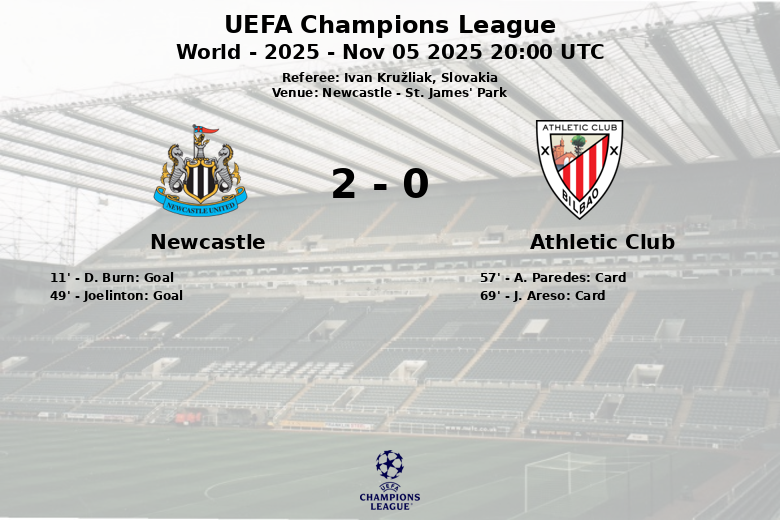 Le match, arbitré par Ivan Kružliak, s’est déroulé sans incident majeur au-delà des cartons jaunes et des fautes mentionnées. Newcastle remporte trois précieux points dans sa quête pour progresser en Ligue des Champions.