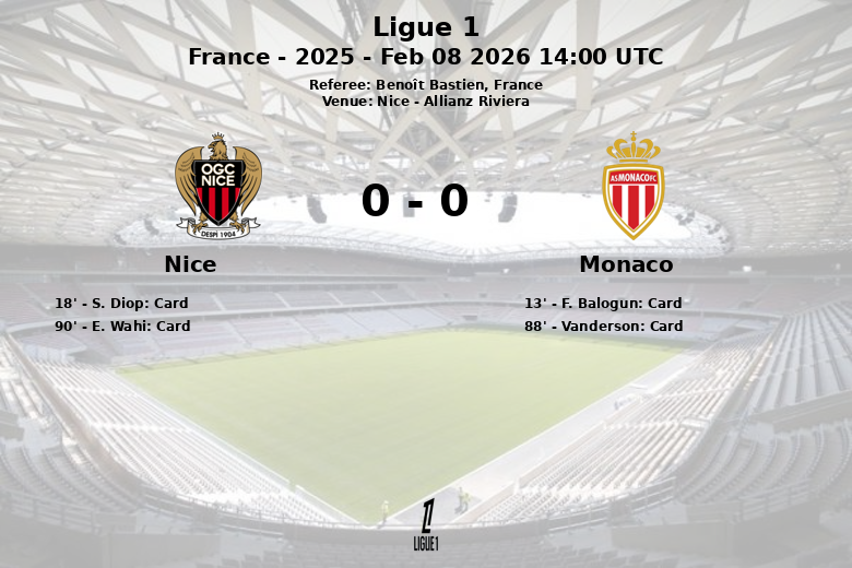 En seconde période, Nice a cherché plus insistamment à marquer, se créant plusieurs occasions qu’il n’a pas réussi à concrétiser. Monaco, de son côté, a tenté d’imposer son jeu par la possession, mais s’est heurté à une défense bien organisée. L’arbitre Benoît Bastien a averti Vanderson (Monaco) à la 88e minute et E. Wahi (Nice) à la 90e minute, témoignant de la lutte constante pour chaque ballon dans les dernières minutes. Malgré les efforts des deux équipes, le score est resté inchangé et le match s’est terminé par un match nul et vierge. Nice a enregistré 13 tirs (4 cadrés) contre 10 (2 cadrés) pour Monaco. Nice a obtenu 7 corners contre 6 pour Monaco.