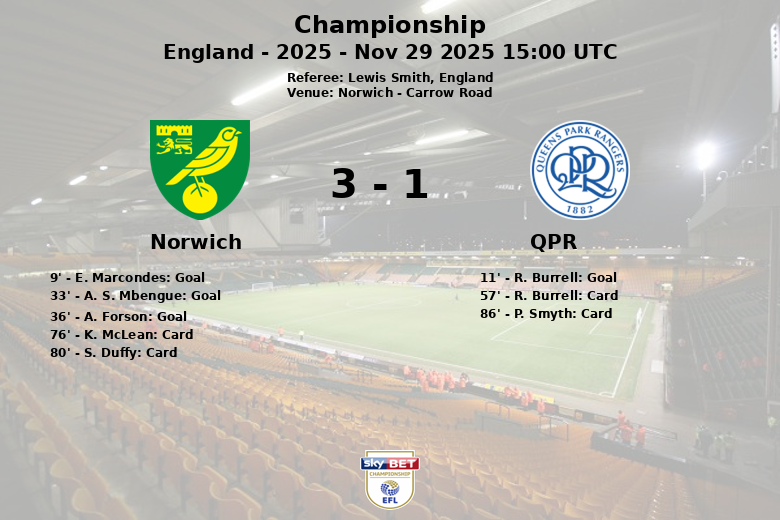 La seconde mi-temps n’a pas modifié le score, bien que QPR ait cherché avec insistance à réduire l’écart. Norwich a réussi à maintenir la possession du ballon (57%) et à contrôler le rythme du match, générant plus d’occasions de but (17 tirs au total contre 10 pour QPR). QPR, de son côté, a commis plus de fautes (13 contre 4) et a reçu plus de cartons jaunes (2 contre 2).