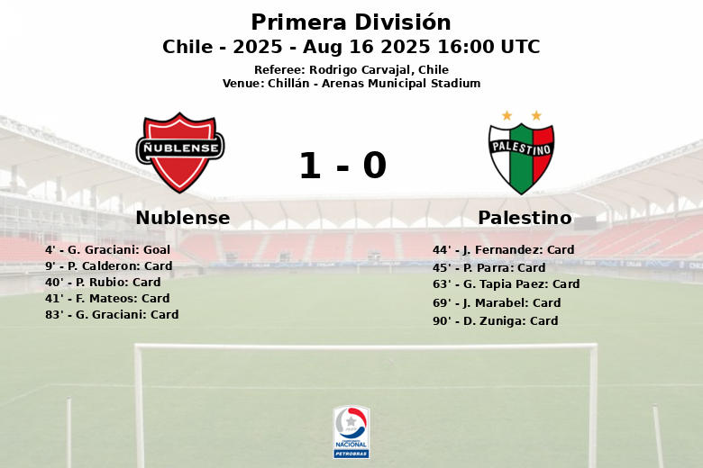 Ñublense, jouant à domicile, a bien commencé le match en ouvrant le score à la 4e minute grâce à un but de G. Graciani, sur une passe de L. Reyes. Cependant, la joie fut de courte durée. L’équipe locale a été frappée par un manque de discipline, accumulant des cartons jaunes pour P. Calderón et P. Rubio, avant que F. Mateos ne reçoive un carton rouge à la 41e minute, laissant Ñublense à dix pendant la majeure partie du match.