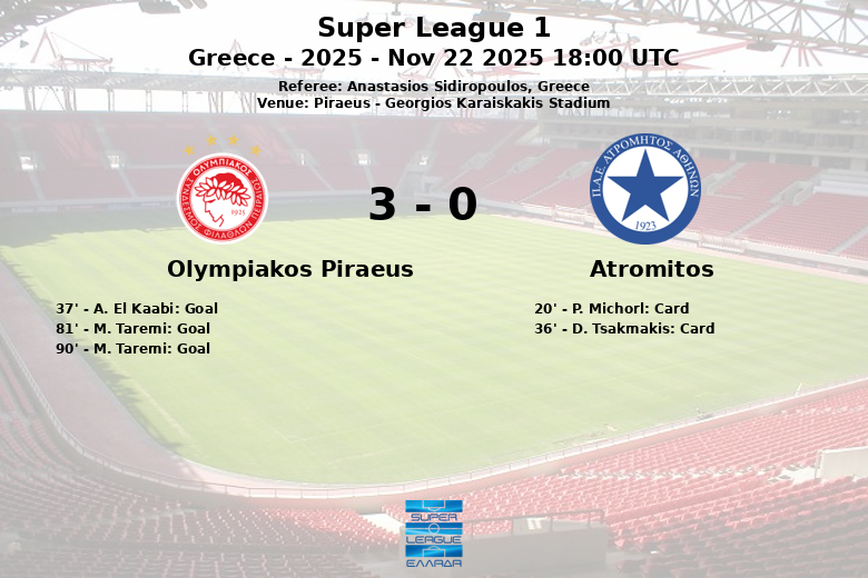 Le Pirée, Grèce – L’Olympiakos du Pirée a démontré sa supériorité face à l’Atromitos avec une victoire convaincante au stade Georgios Karaiskakis. Le match, correspondant à la 11ème journée de la Super League 1, s’est terminé par un score qui reflète la nette différence dans le jeu.