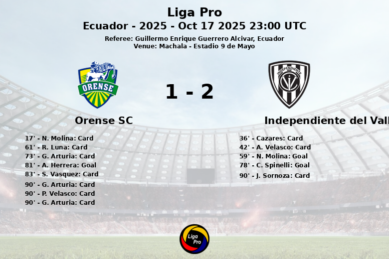 Le score a été ouvert grâce à un but contre son camp de N. Molina à la 59e minute, donnant l’avantage à Independiente del Valle. Plus tard, C. Spinelli a porté l’avantage des visiteurs à la 78e minute. Au moment où il semblait que la victoire penchait du côté d’Independiente, A. Herrera a réduit le score pour Orense SC sur penalty à la 81e minute, insufflant de l’espoir à l’équipe locale et à ses supporters.