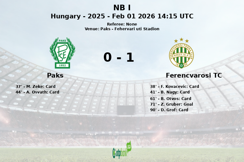 Paks vs Ferencvarosi TC Feb 01 2026 14:15 UTC