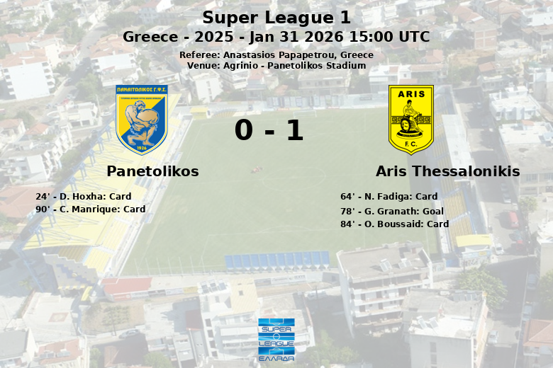 Malgré seulement 34% de possession de balle et un seul tir cadré, Panetolikos a tenu bon jusqu’à la 78e minute, lorsqu’un malheureux but contre son camp de G. Granath, sans passe décisive, a offert à Aris l’avantage décisif.