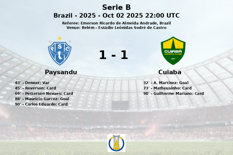 Paysandu vs Cuiaba Oct 02 2025 22:00 UTC
