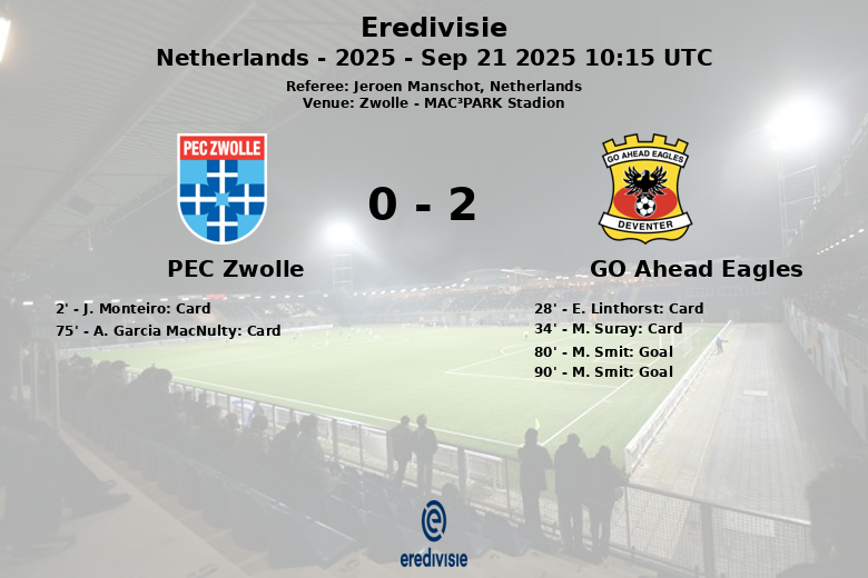 PEC Zwolle vs GO Ahead Eagles Sep 21 2025 10:15 UTC