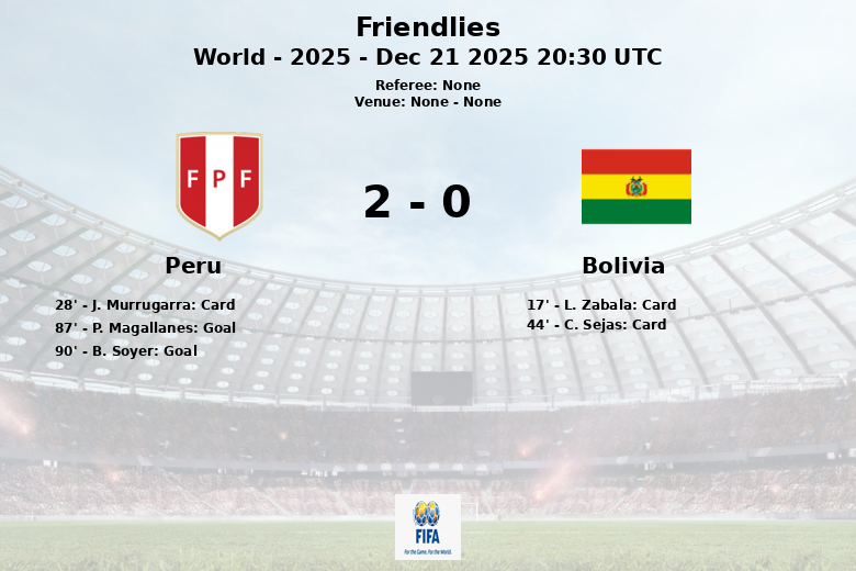 Lors d’un match amical disputé le 21 décembre 2025, l’équipe nationale péruvienne a battu la Bolivie sur le score de 2 à 0. Le match, qui s’inscrit dans le cadre de la préparation aux futures compétitions, a été caractérisé par un jeu disputé au milieu de terrain.