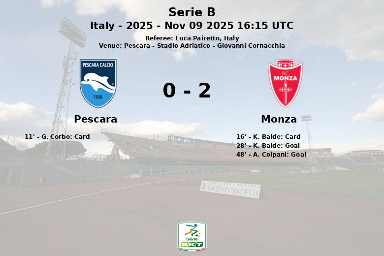 Malgré les tentatives de Pescara, qui a effectué 7 tirs (dont un seul cadré), ils n’ont pas réussi à concrétiser la moindre occasion. Monza, de son côté, a fait preuve d’une plus grande efficacité avec 16 tirs, dont 3 cadrés. Pescara a commis 14 fautes, recevant un carton jaune, tandis que Monza a commis 10 fautes et a également reçu un carton jaune. Monza a remporté la victoire dans un match où sa domination de la possession et sa force en attaque ont été décisives.