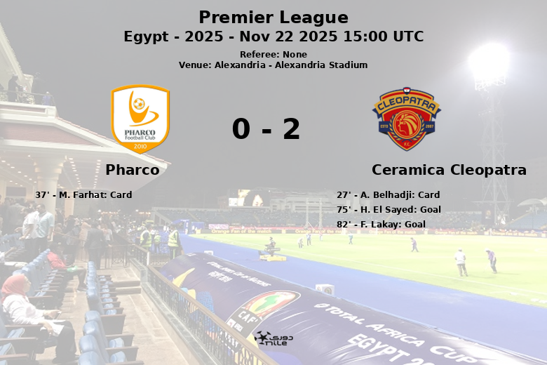 Malgré un début de match avec peu d’occasions franches et deux cartons jaunes distribués entre les deux équipes (A. Belhadji pour Ceramica Cleopatra et M. Farhat pour Pharco), la seconde mi-temps a été le théâtre de la détermination de Ceramica Cleopatra. H. El Sayed a ouvert le score à la 75e minute avec un but qui a mis l’équipe sur la voie de la victoire, et par la suite, F. Lakay a scellé le match à la 82e minute.