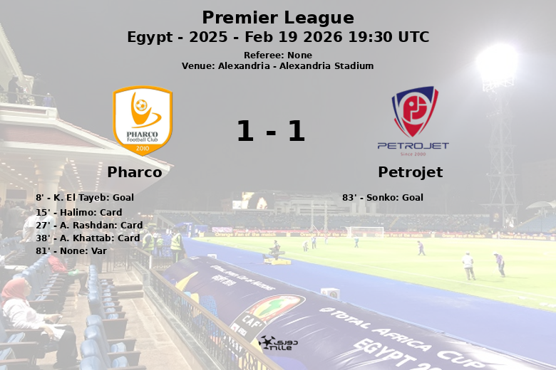 Le match disputé au Stade d’Alexandrie s’est terminé par un match nul après une rencontre acharnée. Pharco a pris l’avantage tôt grâce à un but de K. El Tayeb à la 8e minute, sur une passe décisive de Halimo. Cependant, Petrojet n’a pas abandonné et a cherché sans relâche l’égalisation.
