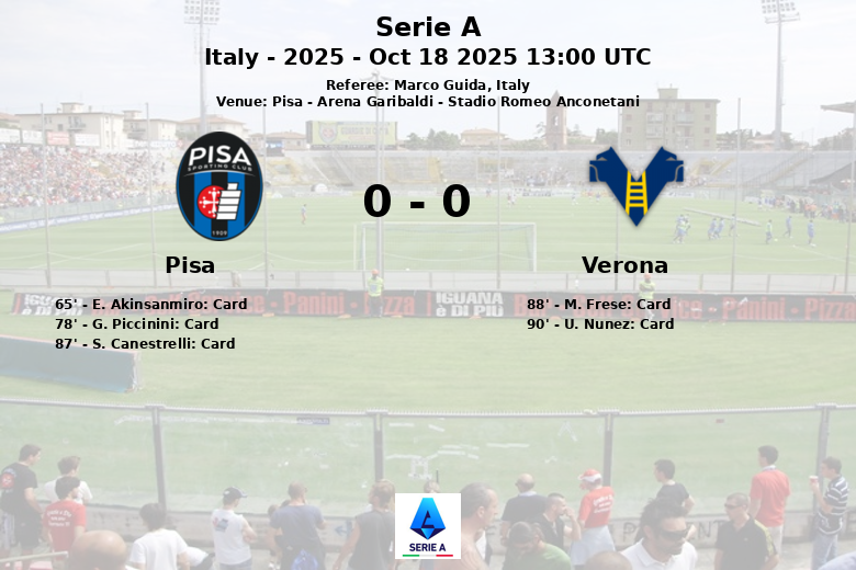 La rencontre a été marquée par l’intensité et de nombreuses fautes, 8 pour Pise et 14 pour Vérone. La discipline a également été un facteur, avec trois cartons jaunes pour les joueurs de Pise et un pour Vérone. L’arbitre Marco Guida a eu un après-midi chargé, gérant un match avec beaucoup de friction au milieu de terrain. Au final, le match nul reflète une rencontre où la solidité défensive a primé sur l’attaque.