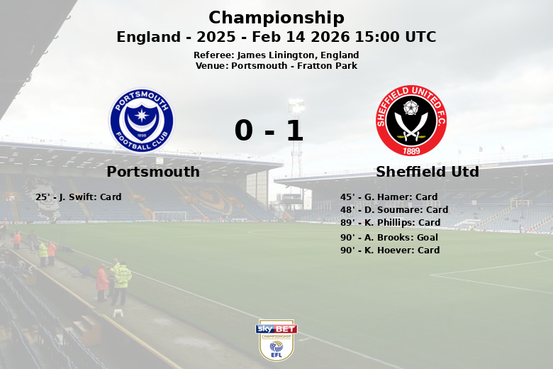 Alors que tout semblait indiquer un match nul et vierge, A. Brooks, à la 90e minute, a déclenché l’euphorie du côté des visiteurs avec un but qui leur a donné la victoire, sans passe décisive enregistrée. K. Hoever de Sheffield United a également reçu un carton jaune à la 90e minute. Le match s’est terminé sur un sentiment mitigé pour Portsmouth, qui, malgré sa domination, n’a pas pu assurer les trois points à domicile.