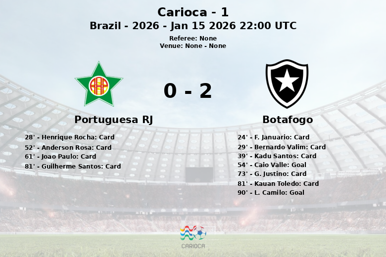 Le premier but est intervenu à la 54e minute grâce à un penalty transformé par Caio Valle, donnant l’avantage initial à Botafogo. L’intensité du jeu s’est traduite par des fautes constantes, totalisant 16 fautes pour Portuguesa RJ et 18 pour Botafogo, ce qui a entraîné un total de 10 cartons jaunes distribués pendant le match, cinq pour chaque équipe. Le deuxième et dernier but de Botafogo est arrivé à la 90e minute, marqué par L. Camilo, scellant ainsi la victoire de son équipe. Malgré une plus grande possession et un nombre de tirs plus élevé, Portuguesa RJ n’a pas réussi à transformer ses actions en buts.