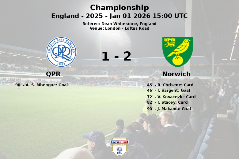 Dans les dernières minutes, le match est devenu frénétique. J. Makama a augmenté l’avance de Norwich à la 90e minute. Cependant, la réponse de QPR a été immédiate, avec un but de A. S. Mbengue également à la 90e minute, bien que cela n’ait pas suffi à modifier le résultat final.