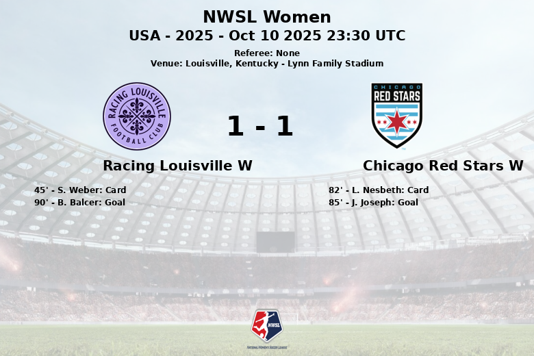 La tension est montée dans les dernières minutes. Tout d’abord, J. Joseph des Chicago Red Stars a débloqué la situation à la 85e minute, grâce à une passe décisive de I. Chacon, portant le score à 1-0 pour les visiteuses. Cependant, la joie fut de courte durée, car dans le temps additionnel, B. Balcer de Racing Louisville a réussi à égaliser, scellant un match nul 1-1 à la 90e minute.