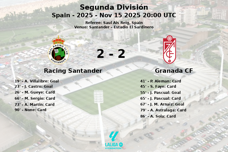 En ce qui concerne les statistiques, le Racing Santander a effectué 12 tirs (4 cadrés), tandis que le Grenade CF en a totalisé 13 (5 cadrés). Le match a été serré, avec 8 fautes commises par le Racing et 17 par Grenade, ce qui a entraîné plusieurs avertissements pour les deux camps. En fin de compte, un match nul qui reflète la compétitivité et la combativité dont ont fait preuve les deux équipes sur le terrain.
