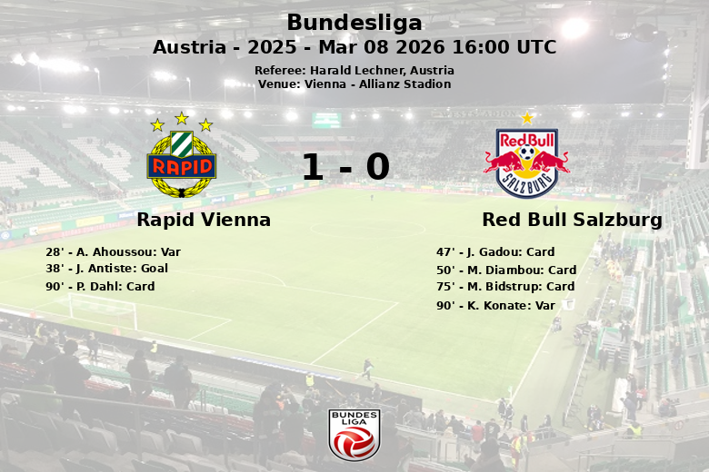Vienne, Autriche – Dans un match acharné de Bundesliga disputé à l’Allianz Stadion, le Rapid Vienne a battu le Red Bull Salzbourg sur le score de 1 à 0. Le match, joué le 8 mars 2026, a été marqué par l’intensité et les batailles au milieu de terrain.