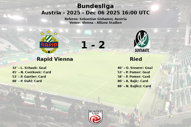 Rapid a pris l’avantage à la 32e minute grâce à un but de L. Schaub, sur une passe décisive de P. Dahl, déclenchant la joie dans les tribunes locales. Cependant, la joie fut de courte durée, car O. Steurer a égalisé pour Ried à la 40e minute, sur une passe décisive de P. Kiedl.