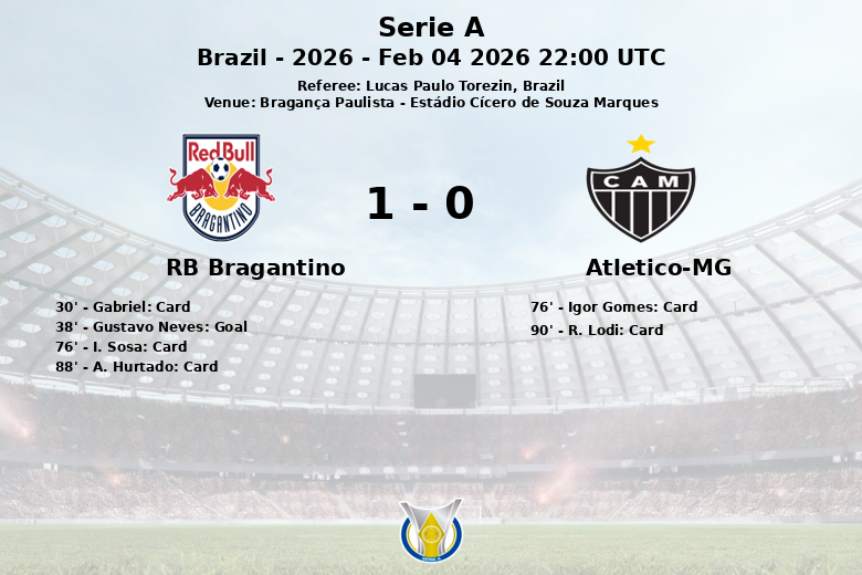 La deuxième mi-temps a maintenu le ton d’un match fermé. Les deux équipes ont cherché à imposer leur rythme, mais la défense de RB Bragantino s’est montrée solide et a réussi à contenir les attaques d’Atlético-MG. Le match a été marqué par plusieurs avertissements, notamment des cartons jaunes pour Igor Gomes, I. Sosa, A. Hurtado et R. Lodi. Bien qu’ayant une possession de balle légèrement supérieure (52%), Atlético-MG n’a pas réussi à concrétiser ses occasions, ne réussissant que deux tirs cadrés. RB Bragantino, avec 48% de possession, a fait preuve d’une plus grande efficacité en attaque, avec cinq tirs dirigés vers le but adverse. Le match s’est terminé par une victoire pour l’équipe locale, qui a su profiter de son opportunité et défendre son avance jusqu’au coup de sifflet final. L’arbitre Lucas Paulo Torezin a officié le match à l’Estádio Cícero de Souza Marques.