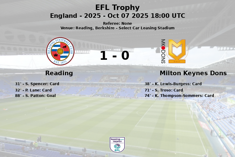 Reading, Berkshire – Lors d’un match disputé au Select Car Leasing Stadium, Reading a remporté la victoire contre Milton Keynes Dons lors de la journée Southern – 2 de l’EFL Trophy. Le match, joué le 7 octobre 2025, a été marqué par la domination écrasante de la possession par Reading, atteignant 71% contre 29% pour Milton Keynes Dons.