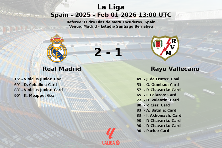 Real Madrid vs Rayo Vallecano Feb 01 2026 13:00 UTC