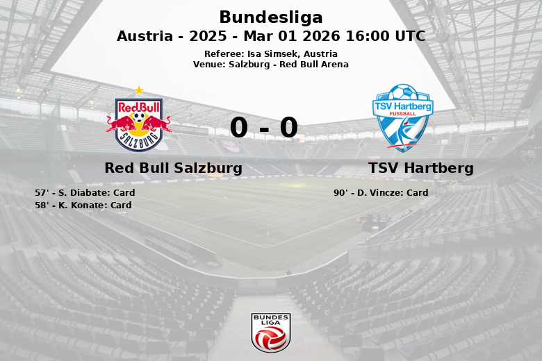 Le match, arbitré par Isa Simsek, a vu deux cartons jaunes pour les joueurs de Salzbourg (S. Diabate et K. Konate) et un pour Hartberg (D. Vincze). Malgré le nombre élevé de corners en faveur de Salzbourg (11), ils n’ont pas réussi à les transformer en buts. La date du match était le 1er mars 2026.