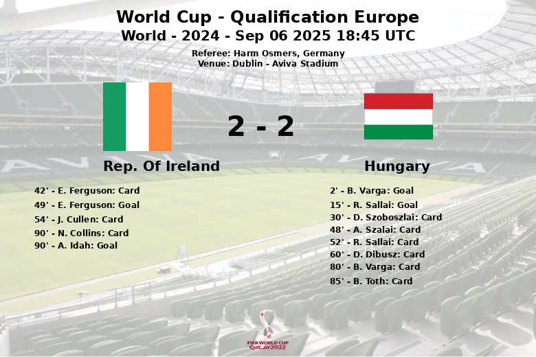 Réduite à dix, la Hongrie s’est repliée et a tenté de défendre son avance, mais la pression irlandaise a été implacable. Finalement, à la 90e minute, Adam Idah a égalisé pour l’Irlande, sur une passe de Ryan Manning, déclenchant l’euphorie dans les tribunes de l’Aviva Stadium. La domination irlandaise, reflétée par 67 % de possession et 22 tirs, a trouvé sa récompense dans les derniers instants du match. L’arbitre allemand Harm Osmers a eu un travail intense, distribuant de nombreux cartons jaunes et un rouge, reflétant l’intensité avec laquelle s’est joué le match correspondant à la phase de groupes des qualifications européennes pour la Coupe du Monde.