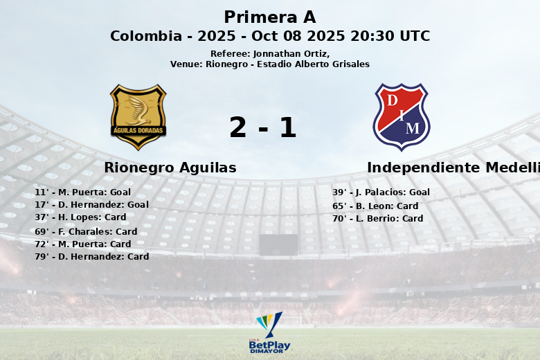 Rionegro, Colombie – Dans un match chargé d’émotion et âprement disputé, Rionegro Águilas a triomphé d’Independiente Medellín au stade Alberto Grisales. Le match, correspondant à la 11e journée du Clausura de la Primera A colombienne, saison 2025, s’est terminé par un score qui reflète l’intensité sur le terrain.