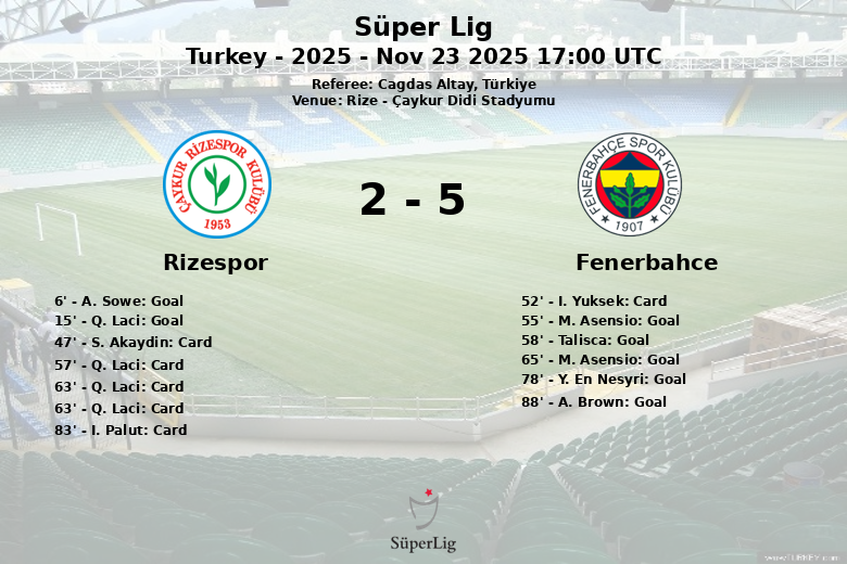 La première mi-temps a vu un Rizespor efficace capitaliser sur ses occasions, mais la deuxième mi-temps a été un monologue de Fenerbahçe. M. Asensio a marqué à la 55e minute, amorçant une remontée qui allait aboutir à une déroute. Talisca a égalisé à la 58e minute, et Asensio a marqué de nouveau à la 65e minute, donnant l’avantage à Fenerbahçe.