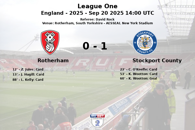 Le match a été marqué par de nombreux cartons jaunes, avec trois pour Rotherham et deux pour Stockport County. Le but de la victoire pour Stockport County est intervenu à la 60e minute, œuvre de K. Wootton, sur une passe décisive de O. Norwood. Malgré les efforts de Rotherham pour égaliser, Stockport County a su conserver son avantage jusqu’au coup de sifflet final. Le match a été caractérisé par un nombre élevé de fautes, 12 commises par Rotherham et 16 par Stockport County, reflétant l’intensité de la rencontre. Stockport County a démontré une meilleure efficacité devant le but, assurant ainsi les trois points dans un match clé de la League One.