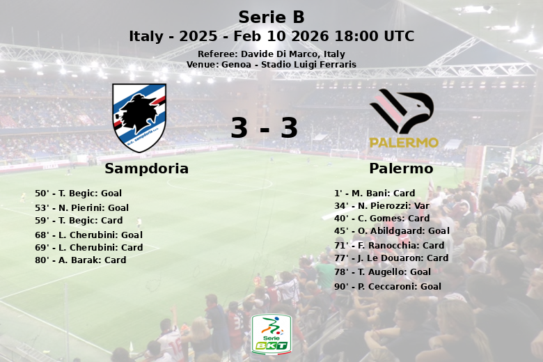 Gênes, Italie – Dans un match acharné au Stadio Luigi Ferraris, la Sampdoria a battu Palerme dans un match vibrant comptant pour la 24e journée de Serie B. Le match, arbitré par Davide Di Marco, a été marqué par un nombre élevé de cartons jaunes et de buts qui ont maintenu l’excitation jusqu’à la dernière minute.