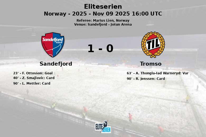 Sandefjord vs Tromso Nov 09 2025 16:00 UTC