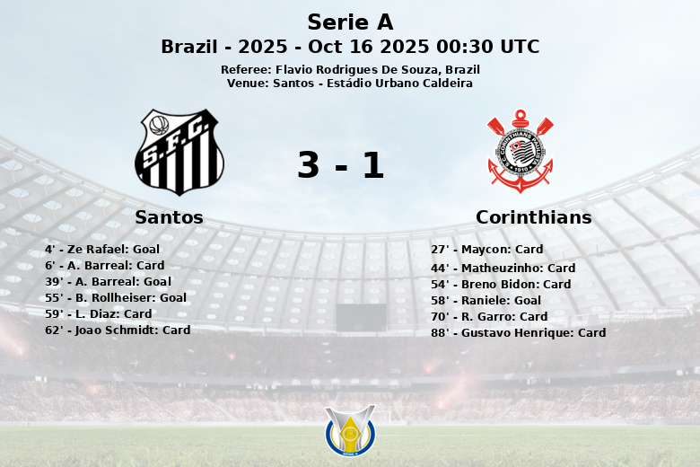 Santos vs Corinthians Oct 16 2025 00:30 UTC