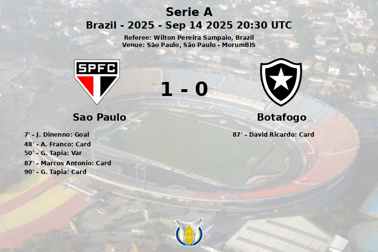 São Paulo, le 14 septembre 2025 – Lors d’un match correspondant à la 23e journée de la Serie A brésilienne, Sao Paulo et Botafogo ont fait match nul dans un match caractérisé par l’intensité et les batailles au milieu de terrain. Le match, disputé au stade MorumBIS de São Paulo sous l’œil attentif de l’arbitre Wilton Pereira Sampaio, a vu les deux équipes se battre pour le contrôle du jeu, bien qu’aucune n’ait réussi à s’imposer définitivement.