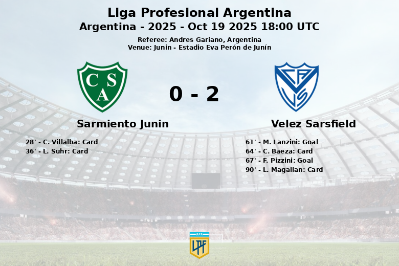 Si la première mi-temps a été vierge de buts, Vélez a contrôlé le rythme du jeu et s’est créé davantage d’occasions. La seconde mi-temps a été complètement différente. À la 61e minute, Manuel Lanzini a ouvert le score pour Vélez, déclenchant l’euphorie chez les supporters visiteurs. Peu après, à la 67e minute, Francisco Pizzini a amplifié l’avantage, scellant pratiquement le match.