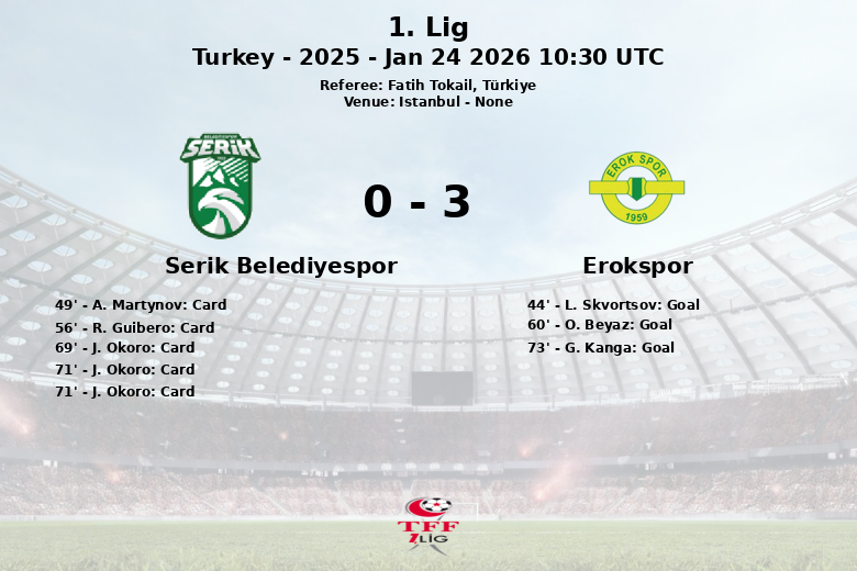Avec ce résultat, Erokspor ajoute trois points importants dans sa quête des premières places de la 1. Lig, tandis que Serik Belediyespor devra repenser sa stratégie pour les prochains matchs. L’arbitre Fatih Tokail a officié le match.