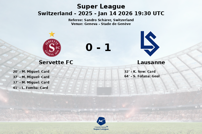 Genève, le 14 janvier 2026 – Dans un match acharné au Stade de Genève, Lausanne a battu le Servette FC dans un match marqué par la tension et les cartons. Malgré une domination de la possession avec 55%, le Servette FC n’a pas réussi à traduire son contrôle en occasions de but claires, n’enregistrant qu’un seul tir cadré sur six tentatives.