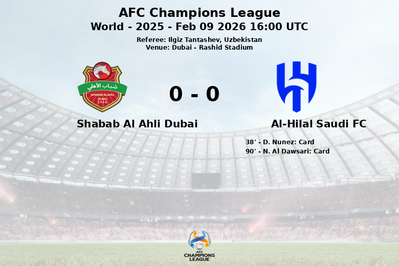 Shabab Al Ahli Dubai vs Al-Hilal Saudi FC Feb 09 2026 16:00 UTC