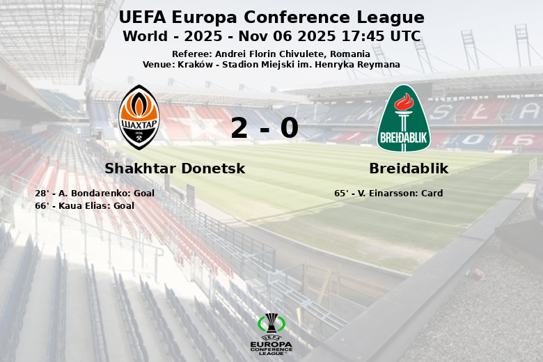Kraków a été témoin d’une performance dominante du Shakhtar Donetsk sur le Breidablik lors de leur match de l’UEFA Europa Conference League le 6 novembre 2025. L’équipe ukrainienne a imposé son rythme dès le début, comme en témoigne sa possession de balle de 76 %.