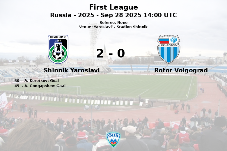 Yaroslavl’ – Lors d’un match disputé au Stadion Shinnik, le Shinnik Yaroslavl a remporté une victoire contre le Rotor Volgograd, match comptant pour la 12ème journée de la First League russe. Le score final était de 2 à 0 en faveur de l’équipe locale.