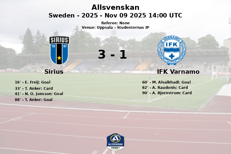 Sirius vs IFK Varnamo Nov 09 2025 14:00 UTC