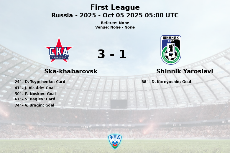 Khabarovsk, Russie – Le Ska-Khabarovsk a vaincu de manière convaincante le Shinnik Yaroslavl lors d’un match de la First League russe qui s’est déroulé le 5 octobre 2025. Malgré des informations limitées concernant la possession de balle, les tirs, les corners et les fautes commises par les deux équipes, le match a été riche en buts et en moments clés.