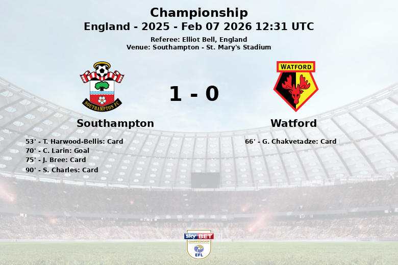 Southampton, Angleterre – Lors d’un affrontement de Championship qui s’est déroulé au St. Mary’s Stadium, Southampton a remporté une courte victoire contre Watford. Le match, comptant pour la 31e journée de la saison 2025, était arbitré par Elliot Bell.
