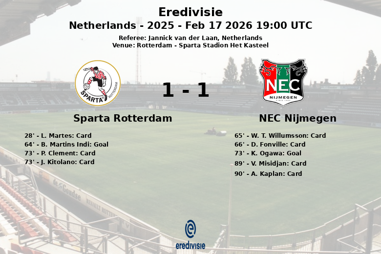 Sparta Rotterdam vs NEC Nijmegen Feb 17 2026 19:00 UTC